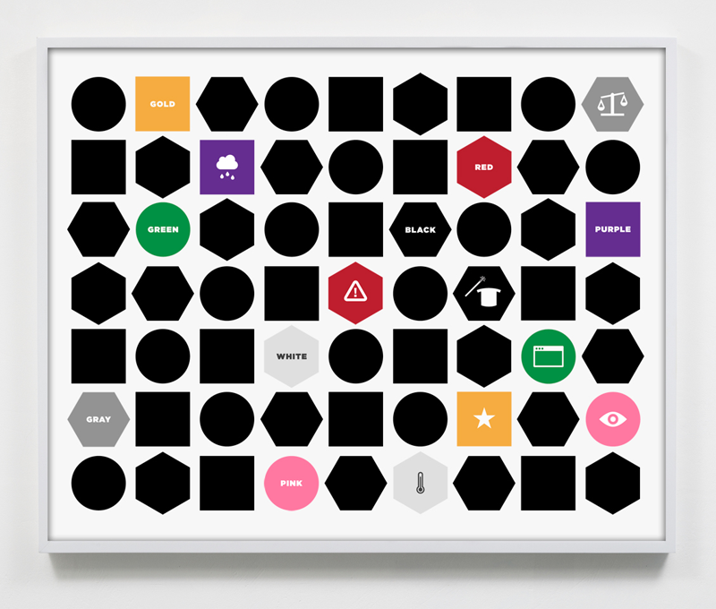 The Puzzles mimic the cognitive game play we engage in as children, when we first began associating words with colors, shapes with other shapes, images and signs with abstract, detached, symbolic meanings. It's a core human skill set—a display of higher functioning and of our unquenchable, evolution-driven need to solve things. But unresolvability is of course another type of resolution. Today, in many different situations (some of which feel quite important), most of our energies seem to go into trying to decide whether something is worth the effort of trying to resolve it or not. What is beyond our capabilities? What difficult solutions are still worth the effort required?