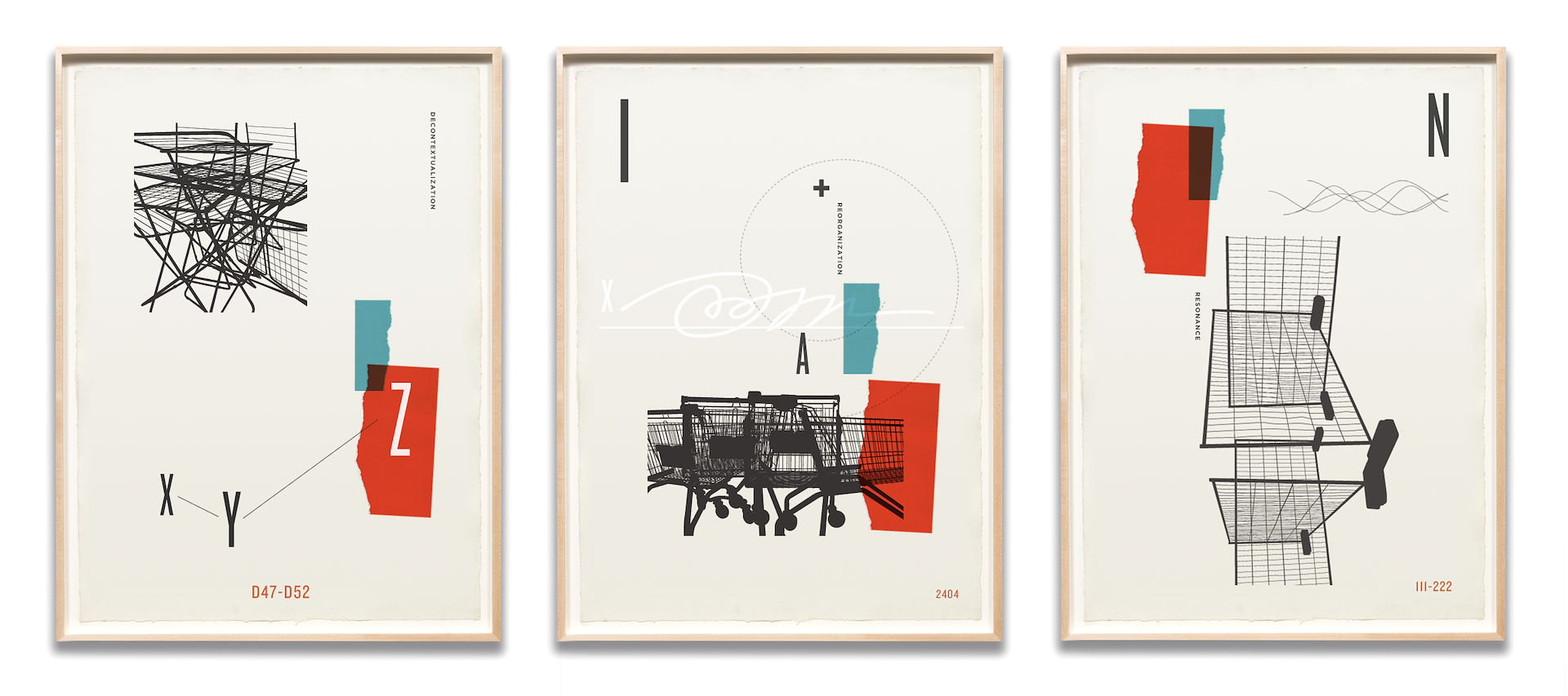 In earlier pieces, I often worked with letterforms and language, which sometimes operated with meaning and sometimes did not. We are strongly programmed to regard black designs (which happen to be letters) on a white background as NOT just shapes and negative spaces—yet it is what they are—as abstract, symbolic, empty or magical as we wish them to become.